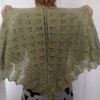 Ez kifejezetten érdekes megoldás, a két szára át van fűzve egymáson, a teljes sál pedig félkörívben van kötve, hogy szépen keretezze a nyakat.